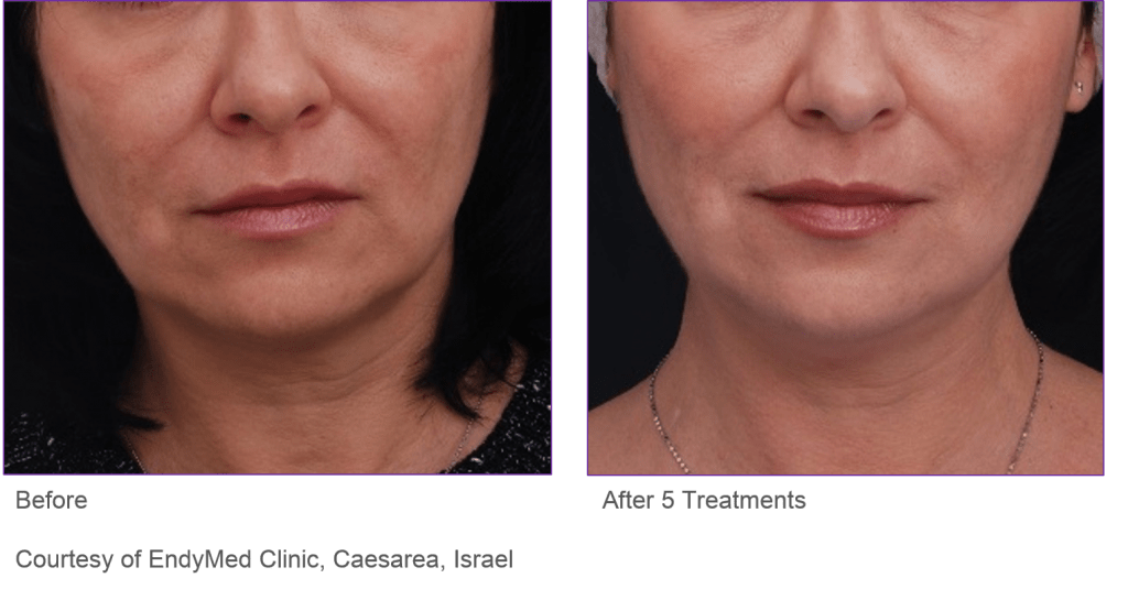 The EndyMed Jawline Shaper treatment is painless with little to no downtime. You may experience some redness in the treated areas, but this will subside within a few hours.